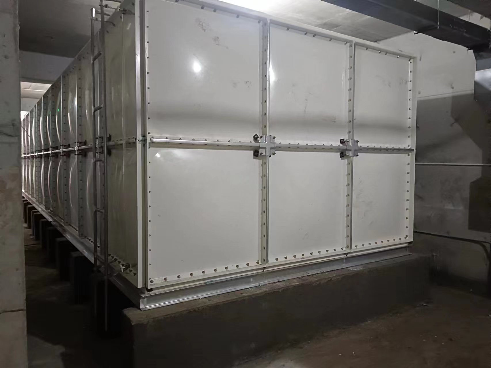 玻璃鋼水箱廣泛適用于工礦、企事業(yè)單位、住宅、賓館、飯店等建筑,作為生活飲用水、中水處理、消防用水及其他用水儲水設(shè)施。玻璃鋼水箱是由SMC模壓板塊、密封材料、金屬結(jié)構(gòu)件及配管系統(tǒng)現(xiàn)場組裝而成。給設(shè)計(jì)和施工帶來極大方便。一般水箱按標(biāo)準(zhǔn)設(shè)計(jì),特殊水箱需要專門設(shè)計(jì)。可根據(jù)用戶需要組裝0.125-1500立方米的水箱。若原有水箱需要更換,不需要改造房屋,適應(yīng)性很強(qiáng)。該密封帶耐水、彈性大、變型小,緊固密封。水箱整體強(qiáng)度高,不易滲漏,不易變形,保養(yǎng)、檢修方便。