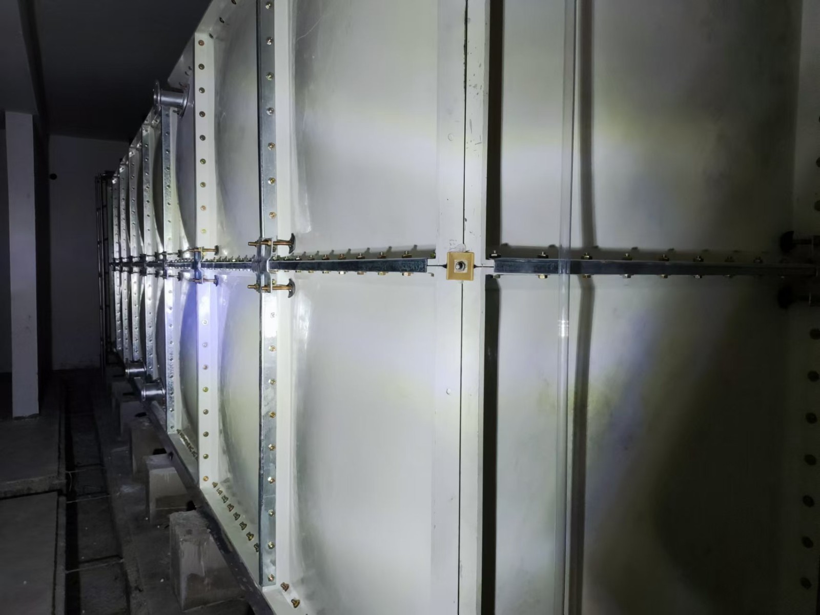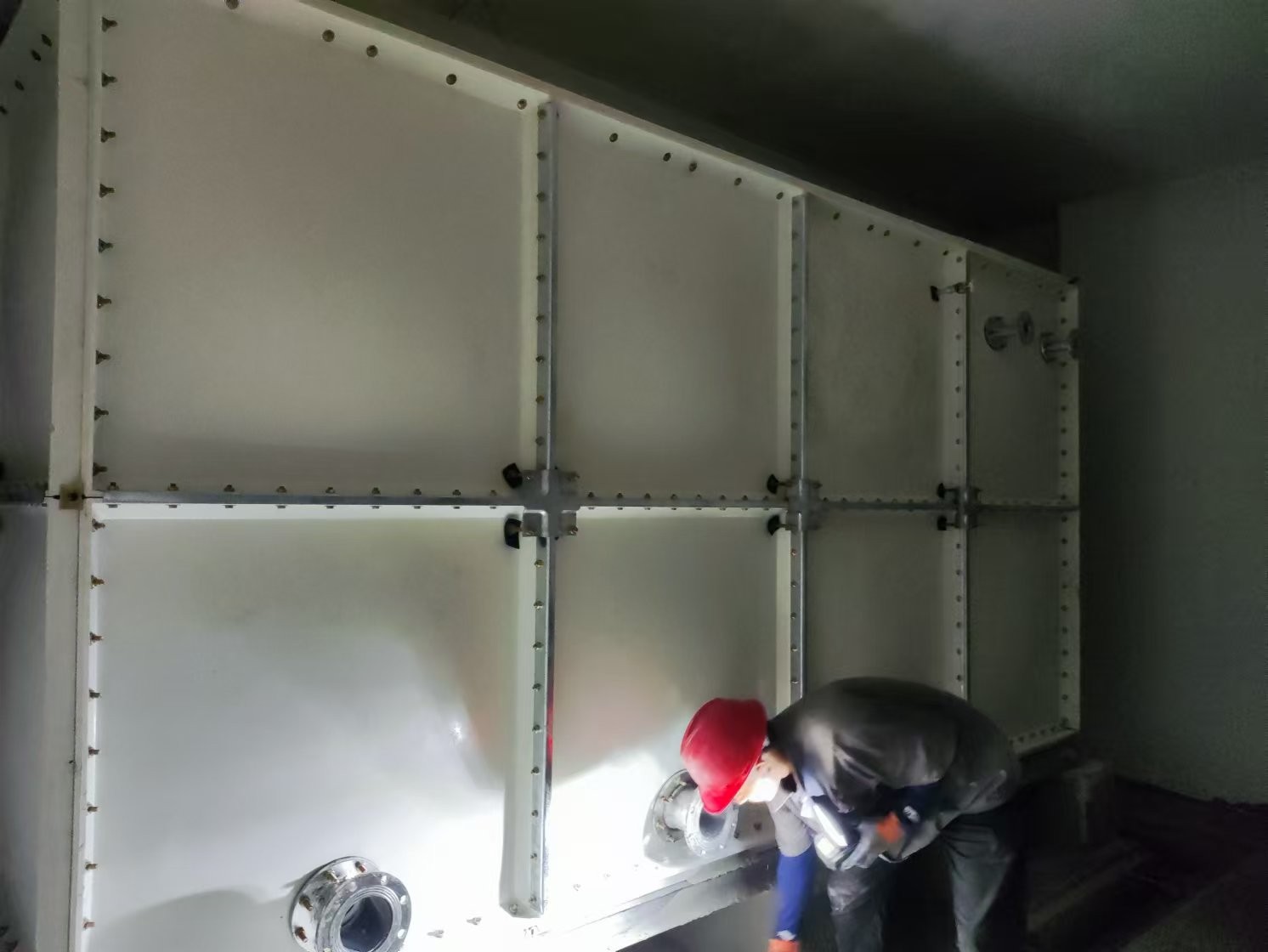 玻璃鋼水箱是由SMC模壓板塊、密封材料、金屬結構件及配管系統現場組裝而成。給設計和施工帶來極大方便。一般水箱按標準設計,特殊水箱需要專門設計。可根據用戶需要組裝0.125-1500立方米的水箱。該密封帶耐水、彈性大、變型小,緊固密封。水箱整體強度高,不易滲漏,不易變形,保養、檢修方便。